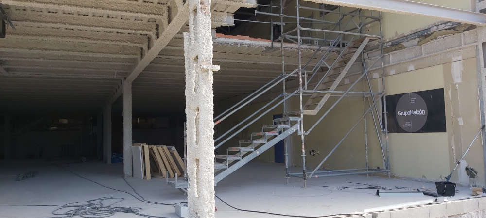 Se ha realizado la protección pasiva de los forjados, las estructuras metálicas de las zonas del comedor y también las zonas de oficinas y exposición.