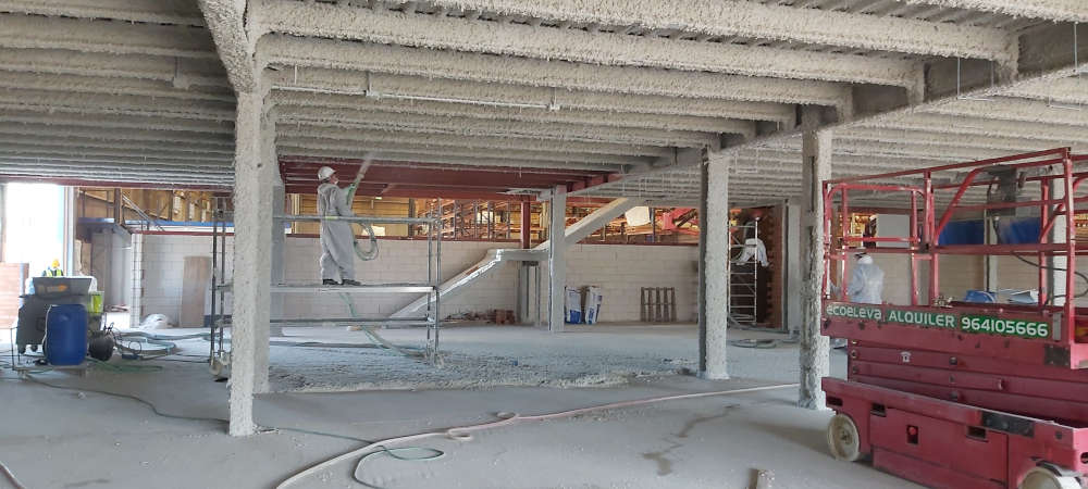 Para realizar este trabajo han hecho falta 2 empleados de Aislamientos y Proyectados Levante, que han ignifugado una superficie total de 2.800 m2, y que para ello han necesitado un periodo de 2 meses.
