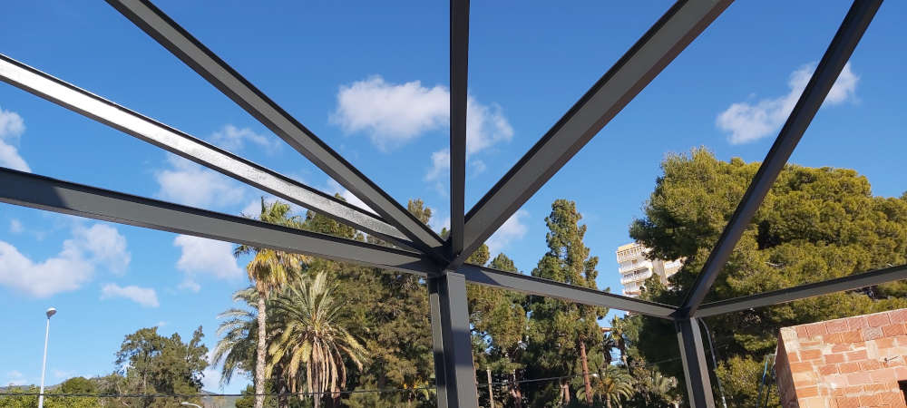 Recubrimiento ignífugo para estructura metálica realizado con pintura intumescente.